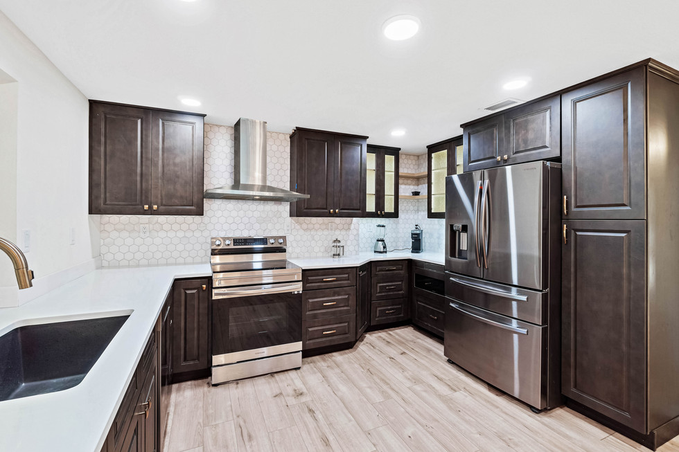 Amazing backsplash, all New LVP flooring throughout the home, stainless steel appliances, new shaker style cabinets with a thought out cabinet pantry, modern brush nickel finishes, recess lights throughout, black granite kitchen sink and more. The standard at Phill's Home Construction is QUALITY!
